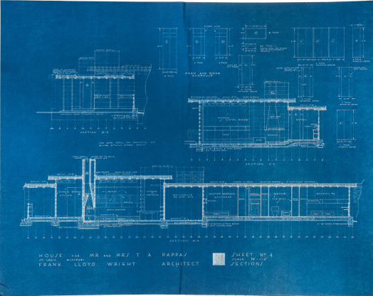 blueprint of Frank Lloyd Wright’s Pappas House