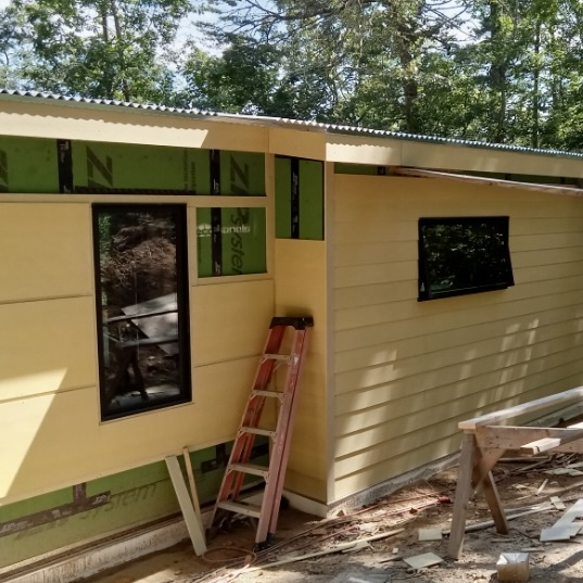 Rob was a great guy to work with. He believed in the benefits of his product and represented it honestly. He had respect and praise for his colleagues who figured out the details and fabricated the panels. He came to the dinky jobsite and gave Phil and the framing crew a crash course in erecting the panels, then hung around until the crew was confident. He was on the other end of the phone line when questions arose, which happens when inquisitive architects are involved.
