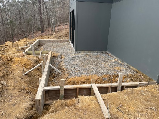 Whew! This is the final post following the construction administration phase – the time following it to the point of “substantial completion.” The last post, Seeing the Light, took us right up to the 2023 Christmas season. The original construction schedule had us scheduled to be complete by the end of October, and I had taken off the week between Christmas and New Year’s for the move in. As October drew closer and we still had a good ways to go, I was forced to go back to the bank and tell them I needed an extra couple of months. This happens …. a lot. By the time Christmas arrived, project completion was close enough that we opened our presents, ate our dinner, woke up the next day and started the move in. The appliances had not been installed, we still had a little tile left, the shower door had not been installed and the final punchlist had yet to be written. We also added a concrete patio leading from the Dormitory. This was a “change order” that I presented to Phil late in the process.